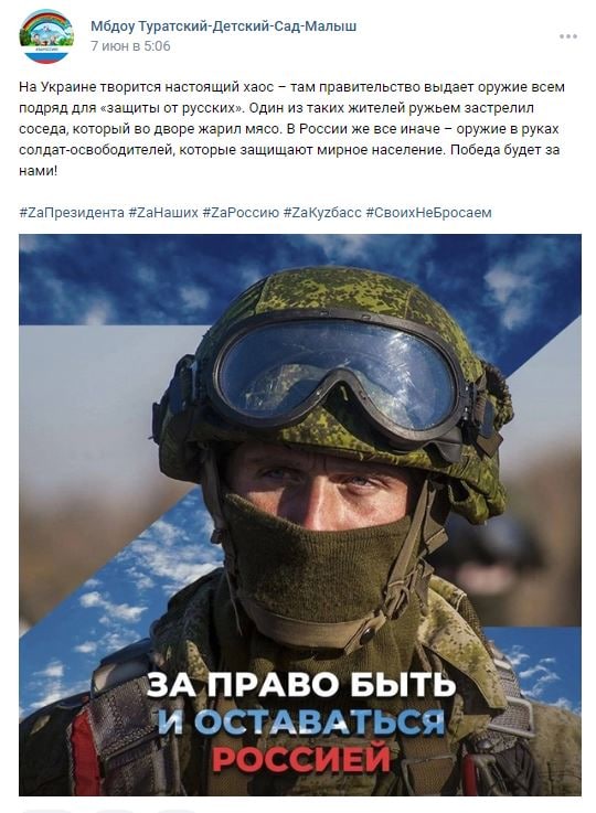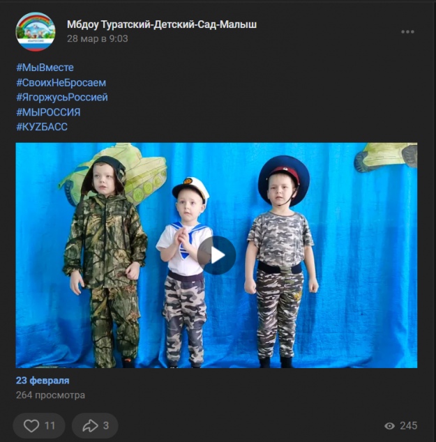 🤦♂️У Росії Кемеровський дитячий садок "Малюк" регулярно публікує на своїй сторінці ВКонтакте військові зведення з інформацією про "нацистів", загиблих в Україні, і про те, як Європі погано без Росії.