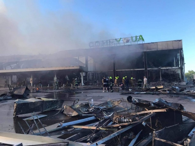 📍Кременчук. Окупанти вдарили ракетами по торговельному центру, де було понад тисячу цивільних. ТРЦ палає, рятувальники займаються гасінням пожежі.
