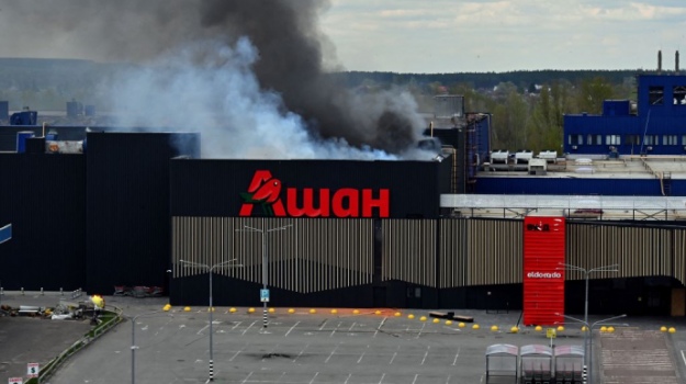 Фото рятувальників з місця обстрілу в Кременчуці. Горить ТЦ, куди влучили росіяни.