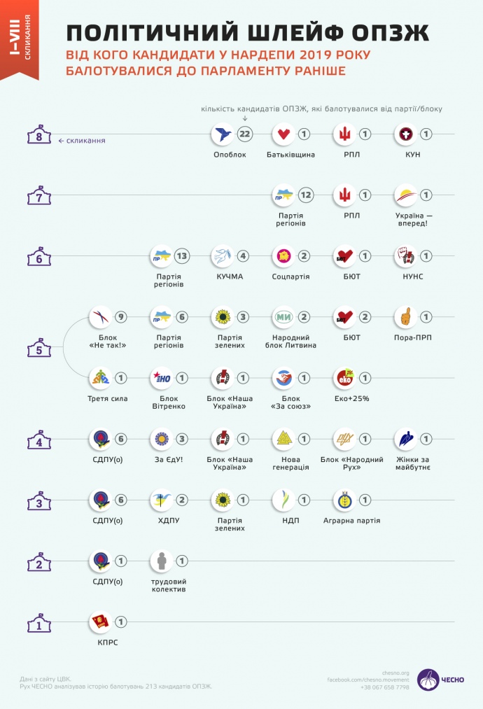 З політичного шлейфу ОПЗЖ чітко простежується, що найбільше кандидатів у нардепи 9-го скликання цієї партії у 8-му скликанні балотувалися від Опоблоку.