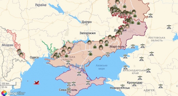 - ВМС України відтіснили флот Росії на 100 км від українських узбережь, щоб зменшити тиск Росії на південні порти України.