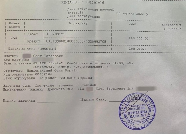 Молоде подружжя на Львівщині перерахувало з власного весілля 100 тисяч гривень на потреби військових Збройних сил України.