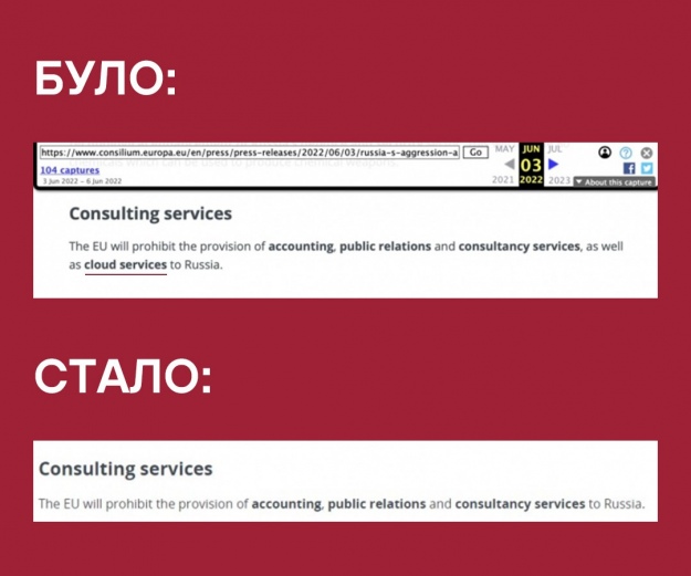 - Із пресрелізу про затвердження шостого пакету санкцій проти Росії на сайті Ради ЄС зникла згадка про обмеження щодо хмарних технологій.