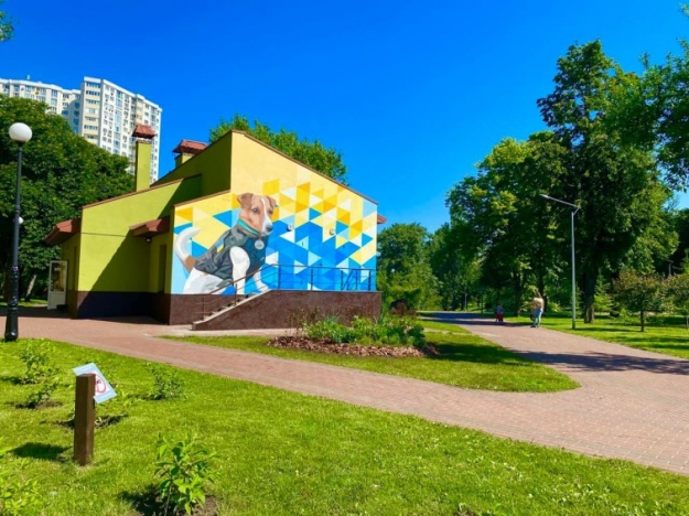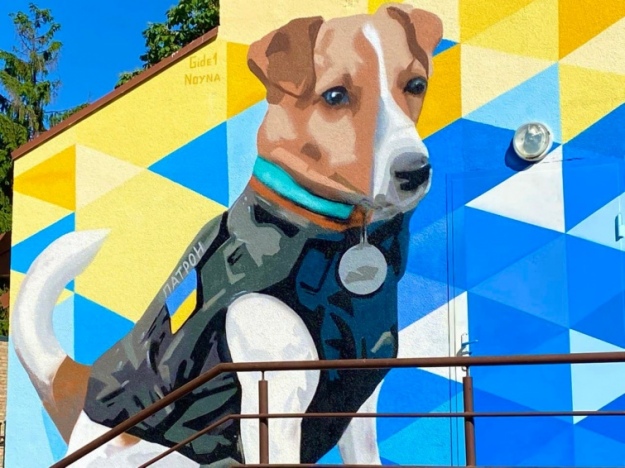 🐶У київському парку "Відрадний" створили мурал зі знаменити псом-сапером "Патроном" – одним з символів воєєного часу в Україні
