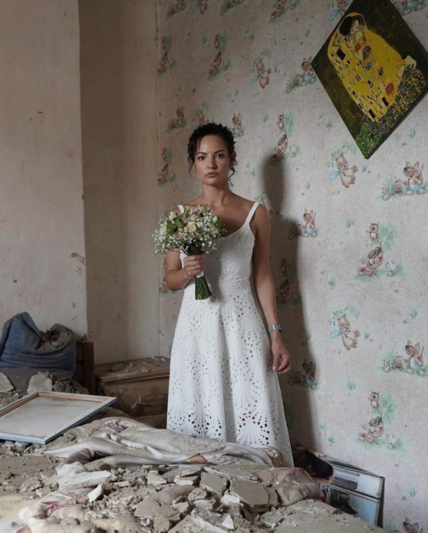 На фото вінничанка Дарія у день свого весілля. Напередодні у її дім дитинства влучила російська ракета.