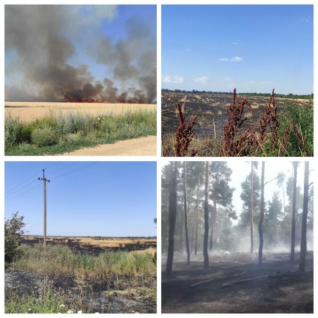 "Херсонщина знову у вогні, внаслідок ворожих обстрілів горять поля та ліси, дим видно звідусіль, російські війська цілеспрямовано знищують врожай. Окупанти навмисне не допускають рятувальників або місцевих жителів для гасіння пожеж. Лише за останні дні вигоріло понад 230 гектарів пшениці у Бериславському та Генічеському районах, вогнем пошкоджено близько 10 гектарів лісу поблизу міста Олешки", - повідомляє у Фейсбуці поліція Херсонської області.