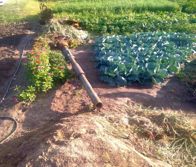 На Київщині у селищі Велика Димерка господиня використала зруйнований танк, як компостну яму, та обсадила воєнний експонат городиною.