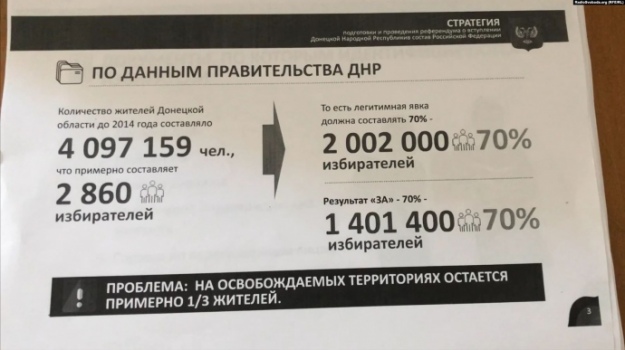 Так звана "ДНР" планує імітацію "референдуму" на всій території Донецької області з результатом 70% голосів за приєднання до Російської Федерації.