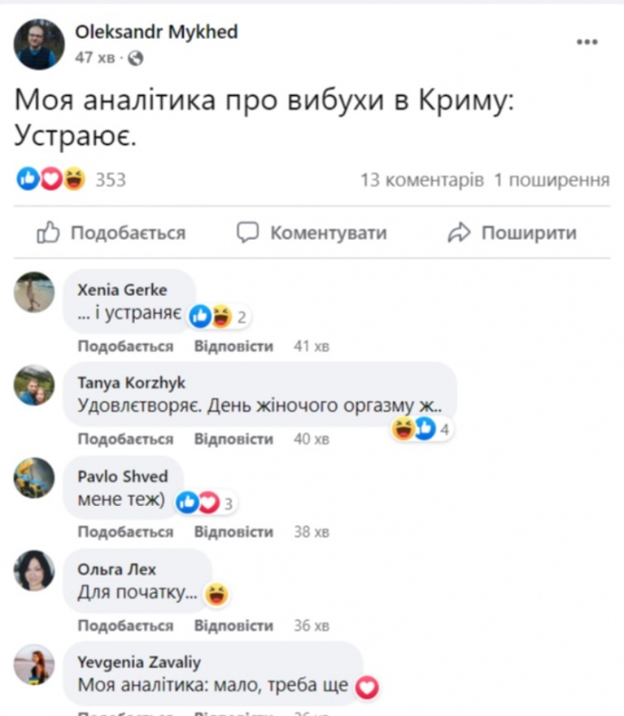 Тим часом українці у соцмережах активно обговорюють вибухи та створюють меми: