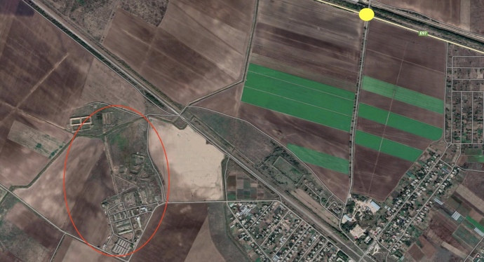 Цей об’єкт розташований безпосередньо біля Майського та неподалік залізничної колії. Нині на супутникових знімках він виглядає так: