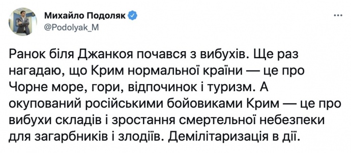 На "бавовну" в Криму відреагували й у політичному керівництві держави, назвавши вибухи "демілітаризацію".