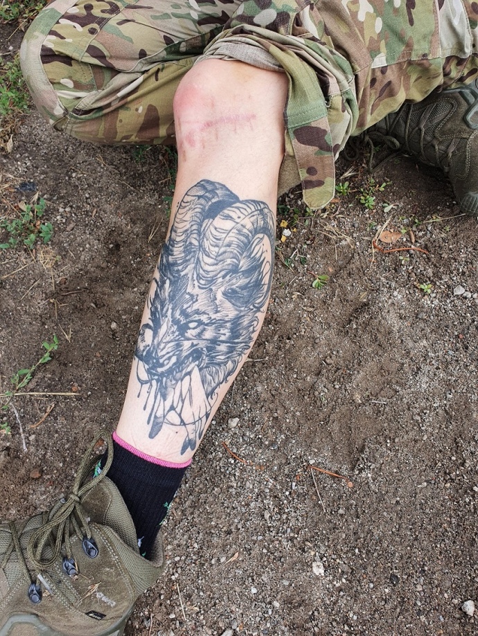 Перекочуюся прямо по калюжі вбік, як раптом збоку спалах, і я відчуваю, ніби мене вдарили по нозі великою брилою асфальту. Я закричала так сильно, що мій крик чули хлопці за кілька сотень метрів. Підповз товариш, відтягнув мене за бронік на узбіччя й наклав на ногу турнікет.