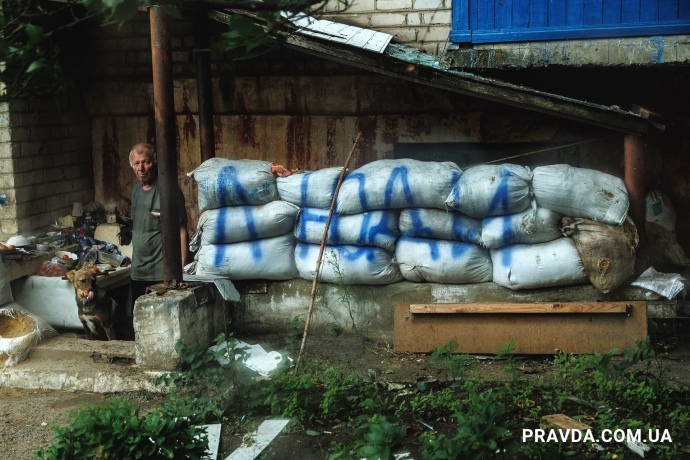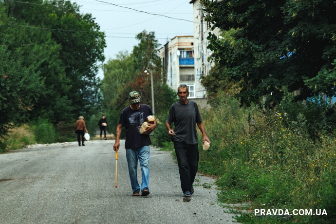 Сьогодні фотограф УП Дмитро Ларін побував у Сіверську – місті на півночі Донеччини, на яке вже з початку липня активно наступають росіяни. В об'єктиві Дмитра – місцеві жителі, які отримують хліб під дощем.