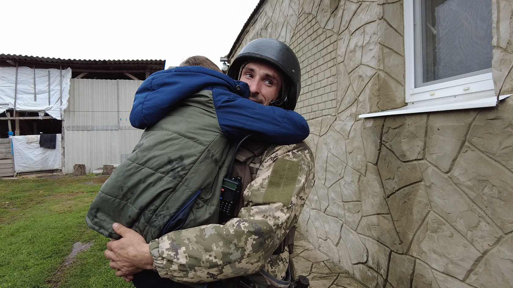"Вперше за пів року можемо зітхнути вільно!" – каже одна з місцевих жінок, обіймаючи командира підрозділу київської тероборони та дякуючи бійцям за звільнення міста.