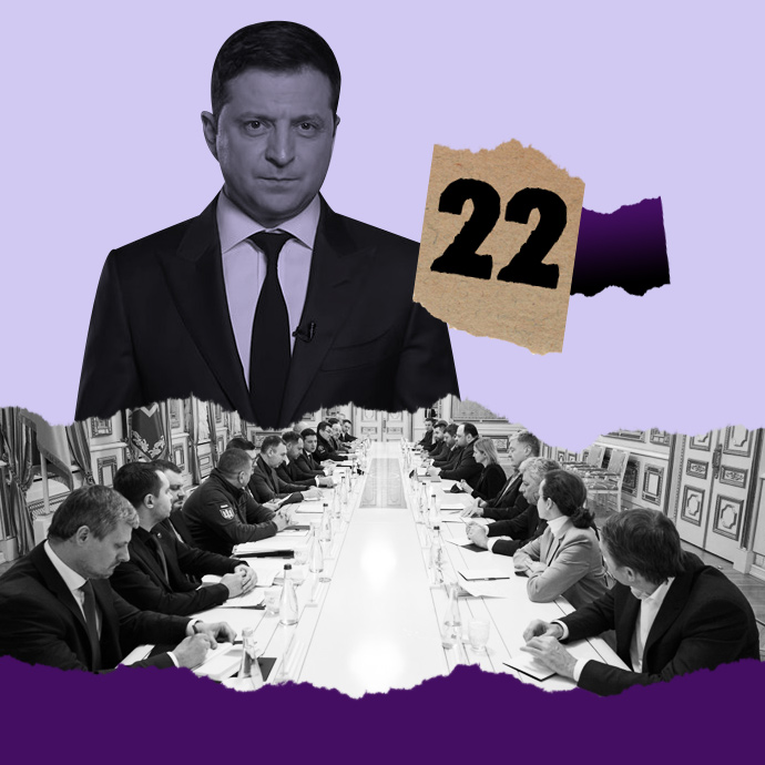 Увечері 22 лютого президент Зеленський вперше за всю каденцію Ради 9-го скликання запросив на Банкову голів усіх парламентських фракцій.
