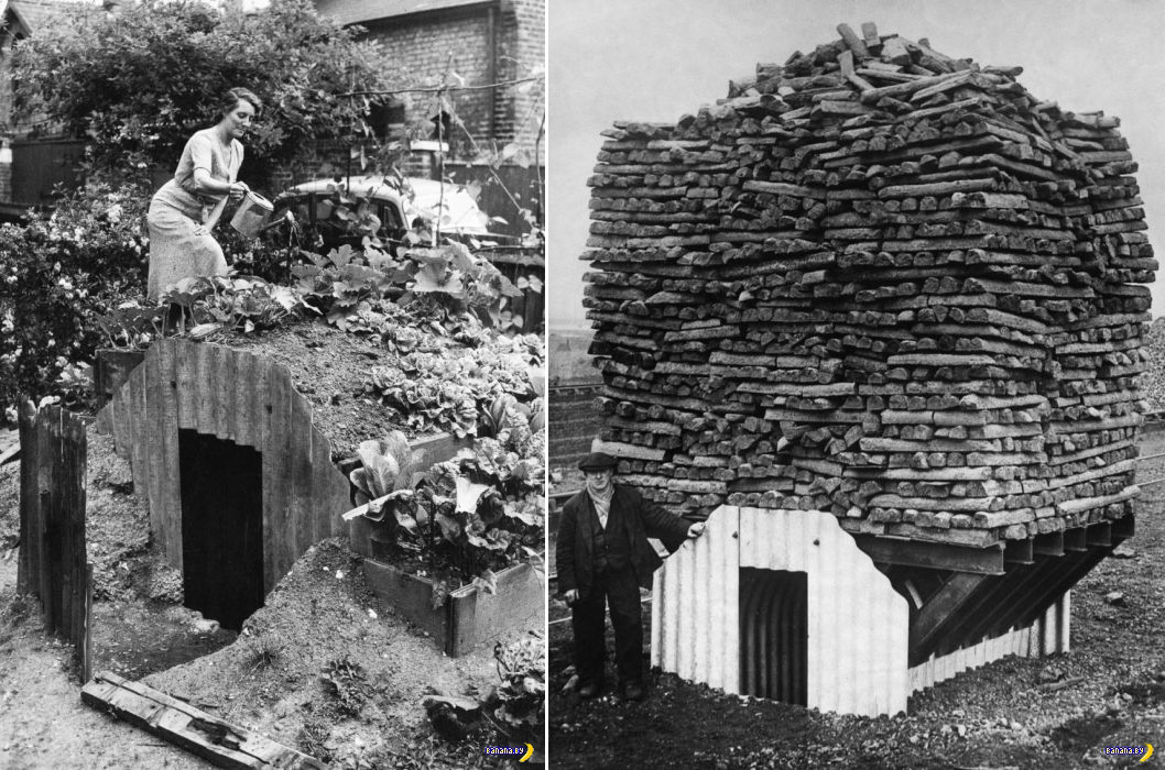 "Сховище Андерсона" − конструкція з 14 аркушів гофрованого заліза, яку прикопували і покривали шаром землі на ділянці біля будинку. Усередині обладнували спальні місця, а на даху укриття саджали овочі та квіти.