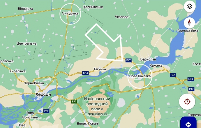 В ніч з вівторка на середу вони перекинули свої сили зі Снігурівки до району села Корсунка та Нової Каховки.