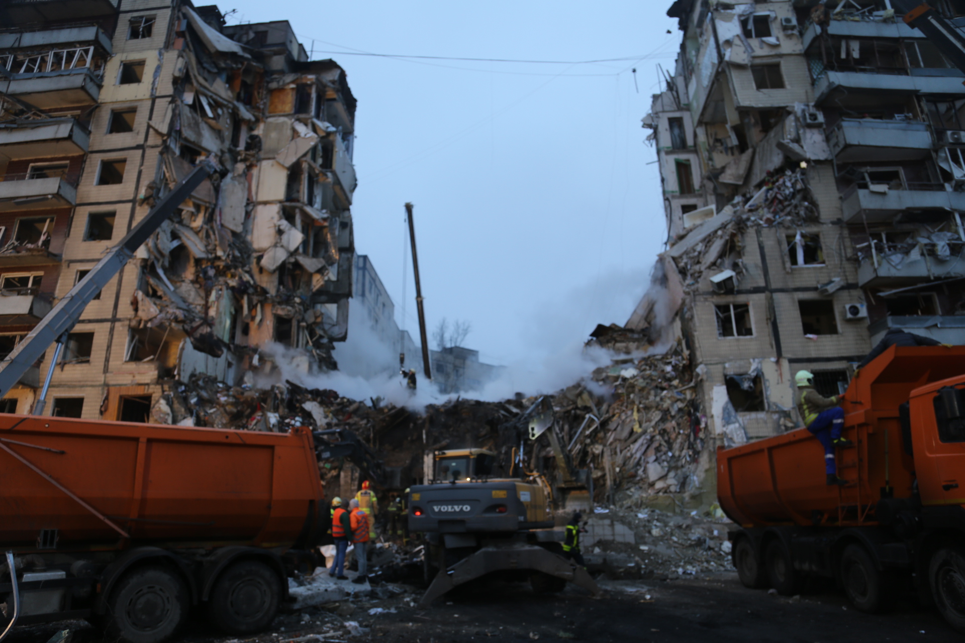 "Є хто живий?" – опівночі 14 січня кричать рятувальники, які працюють над розбором завалів у Дніпрі.