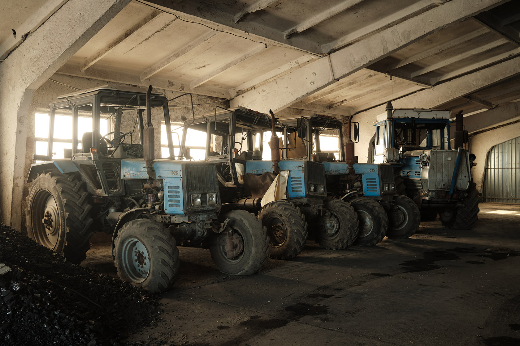 "До війни у нас тут було опалення, тепло було, – каже Сергій, заводячи нас до приміщення для зберігання техніки, яке вже встигли відремонтувати. – Зараз світло і воду відновили. Нічим топити, вони покрали ж дрова".