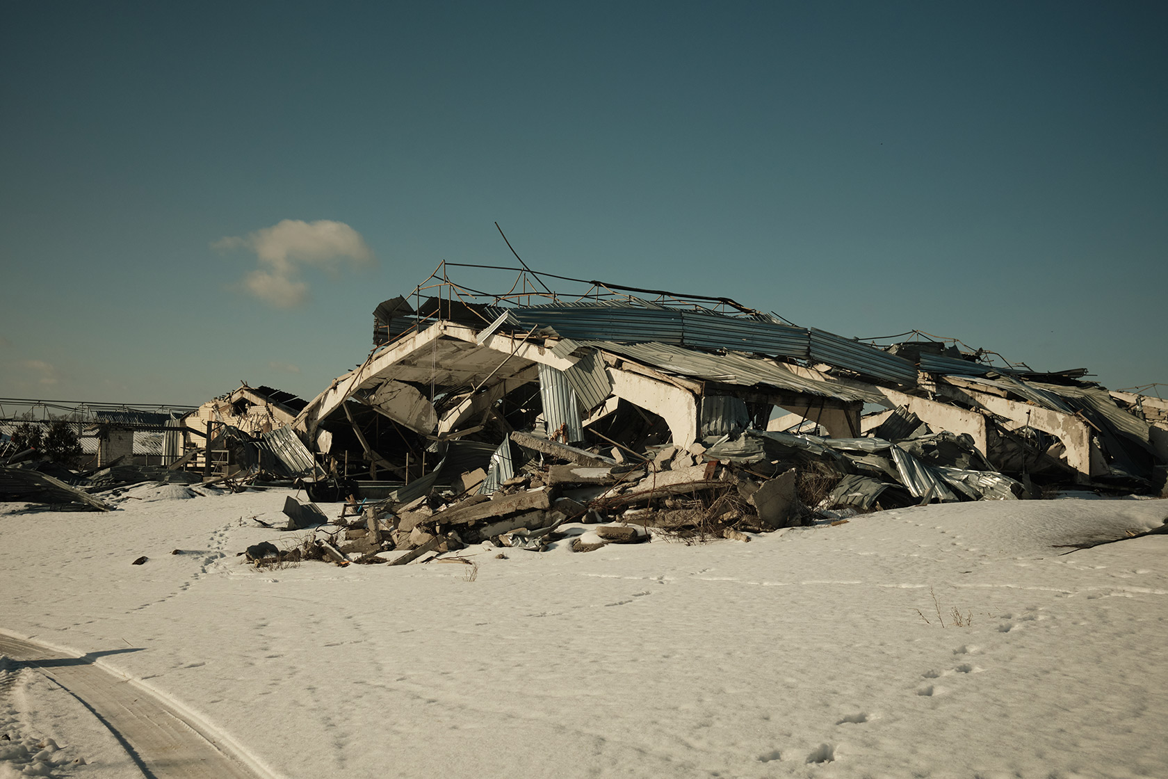 Надворі трохи вище, ніж нуль за Цельсієм, яскраво світить сонце. Руїни підприємства, що колись процвітало, поблискують у променях посеред снігу, який намело напередодні.