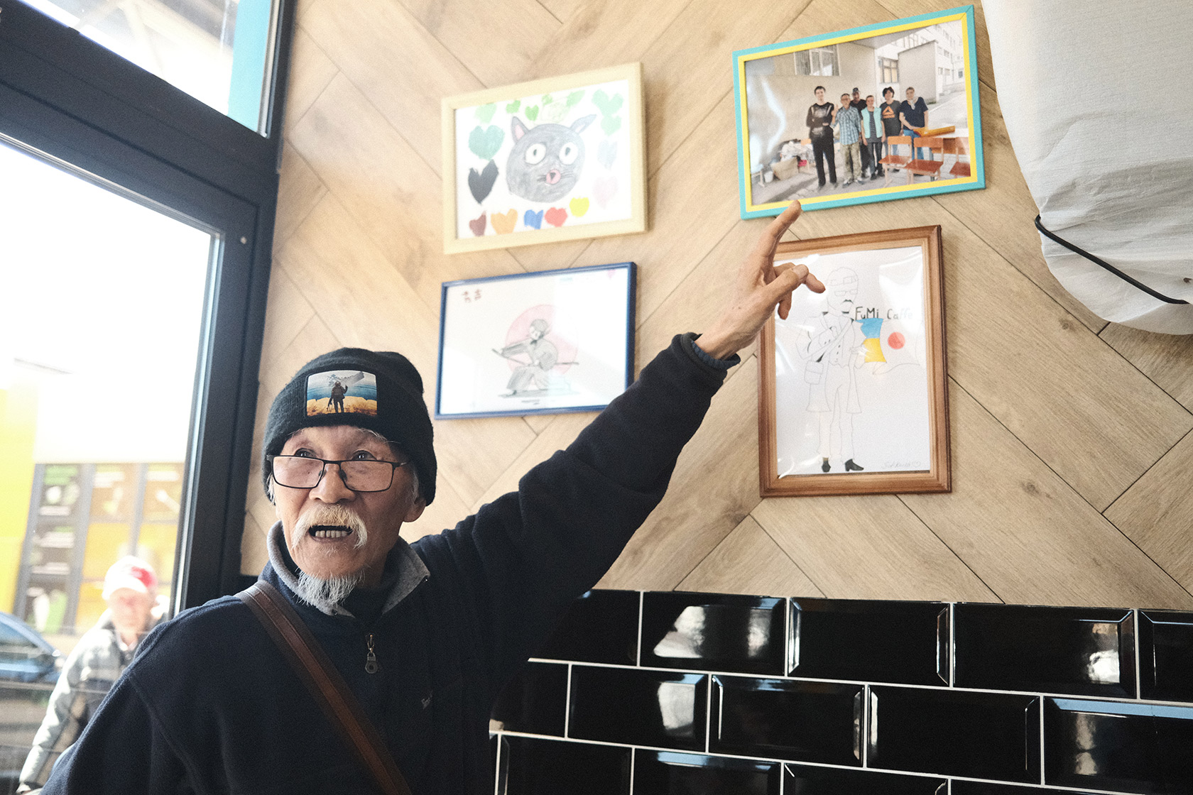"Цього року я маю достатньо грошей, щоб вийти у світ, тому вирішив відкрити кафе, – розповідає Фумі. – (Цю локацію відкрив) для всіх українців. Оскільки війна затягується, люди виснажені, вранці все більше й більше шукають їжу, корпаючись у сміттєвих баках. Я би хотів нагодовувати таких людей".