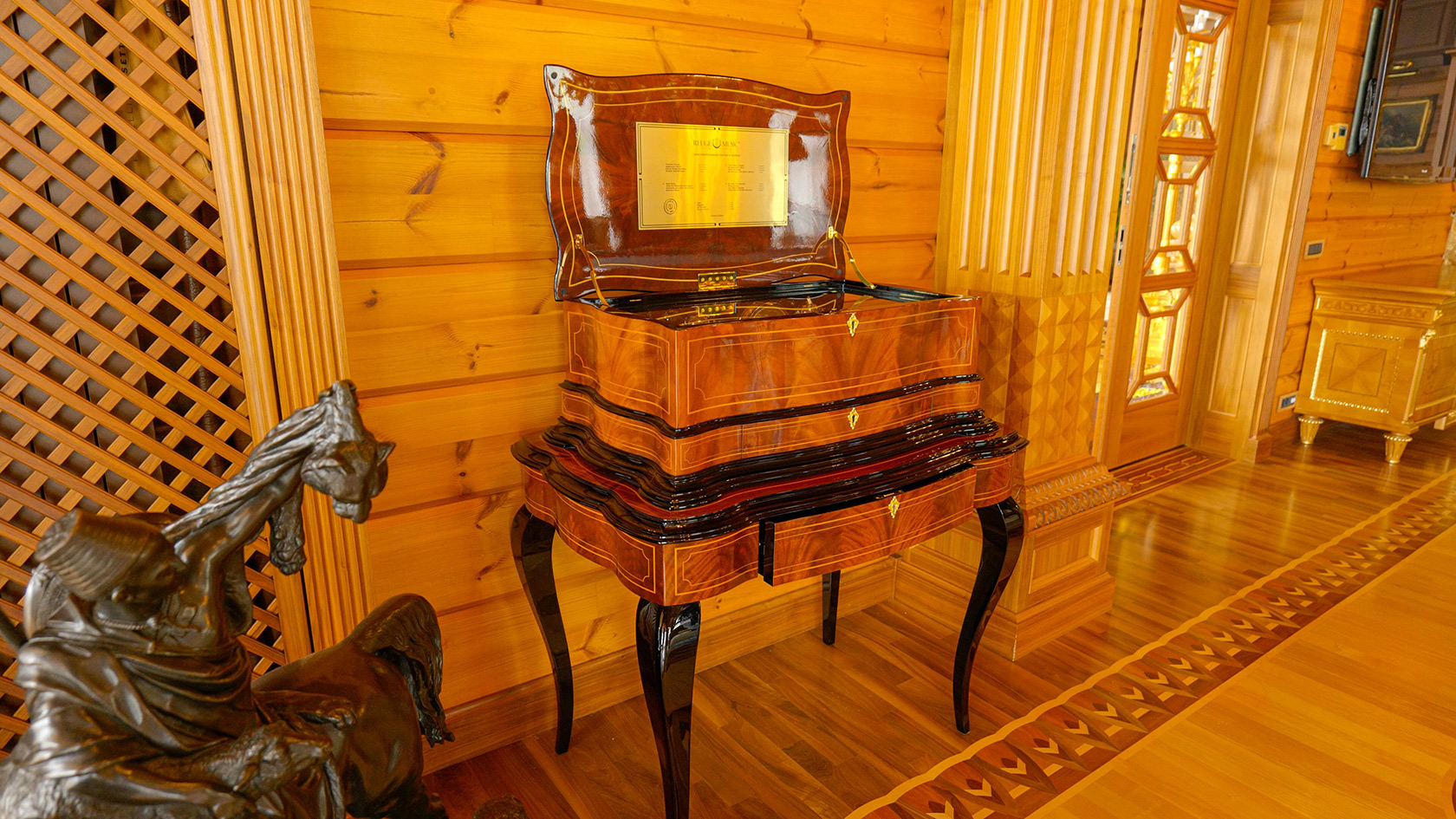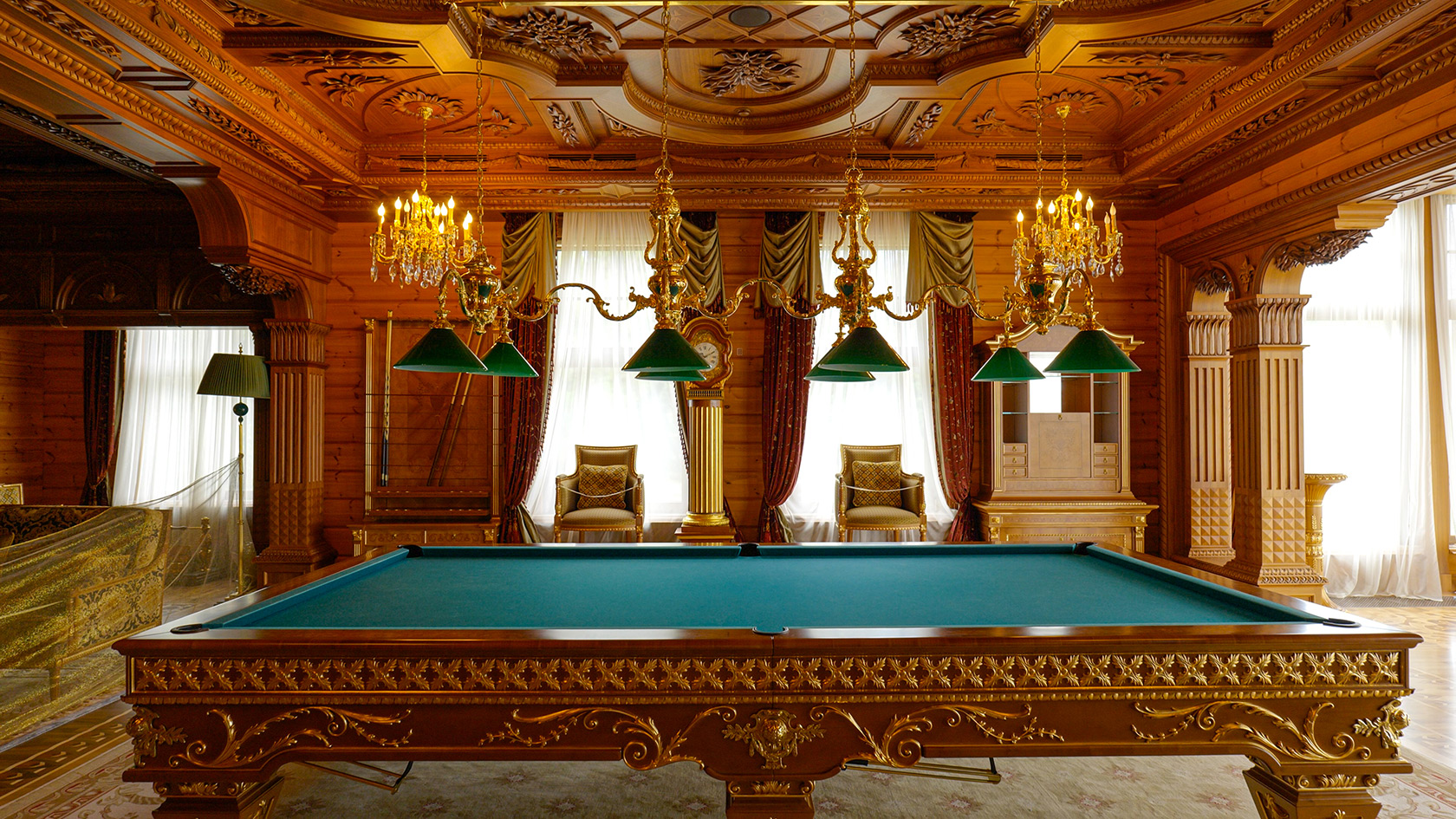 Про будні Януковича Юлія розповідає у більярдній, де дуже багато дерева. На стелі та стінах німецьке різьблення. В кутку – та сама механічна шарманка.