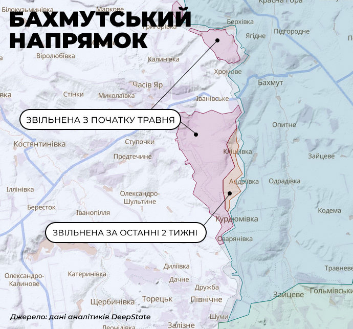 На півдні українські військові перейшли канал "Сіверський Донець – Донбас", втім, поки що не змогли відбити ключові села на цьому фланзі – Кліщіївку та Курдюмівку. Об'єктивно, до кінцевої мети наступу, а саме до оточення Бахмута, ще багато роботи.