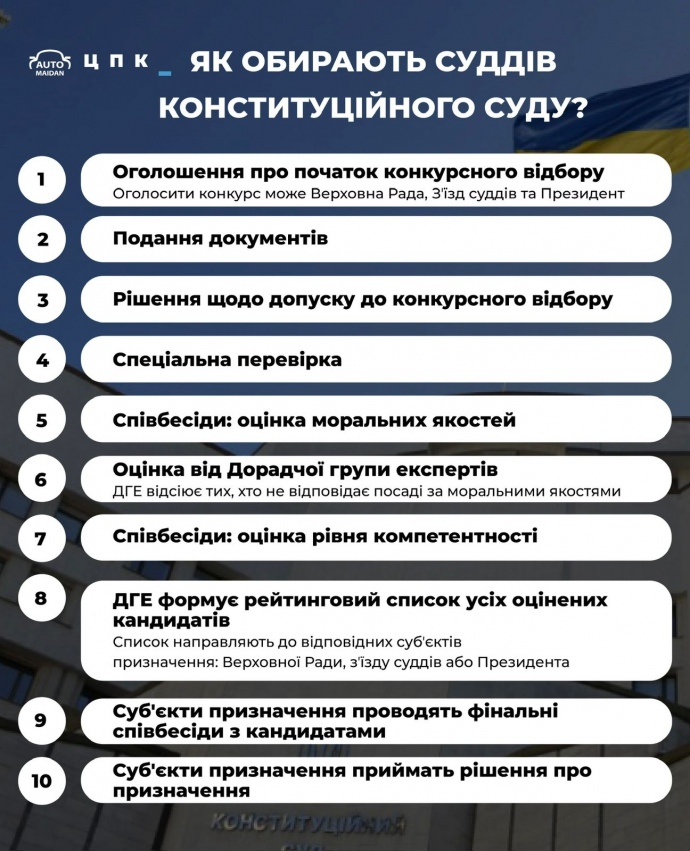 Проте є і хороша новина – вперше за всю історію призначення суддів КСУ в Україні цей відбір відбувається справді відкрито. Тож про аспекти біографії кандидатів на посаду суддів ми дізнаємося до призначення, а не після.