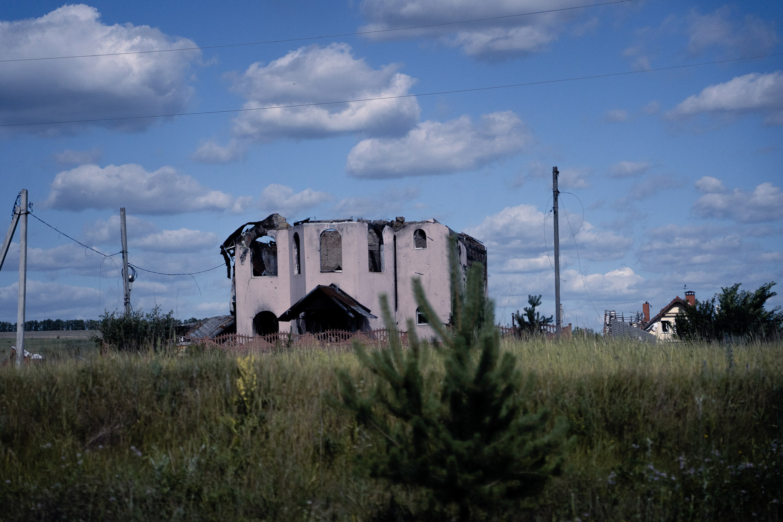 Поле за побитими будинками нагадує "музей війни" з тією різницею, що війна ще далека від фінішу. Замість експонатів тут хвостовики від РСЗВ, величезна заповнена водою вирва з-під КАБу та протитанкові міни. Серед усього цього мирно пасуться корови. Одна з них зі скривавленою ногою – напередодні наступила на "лепесток".