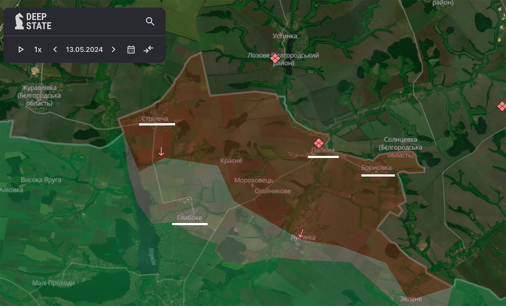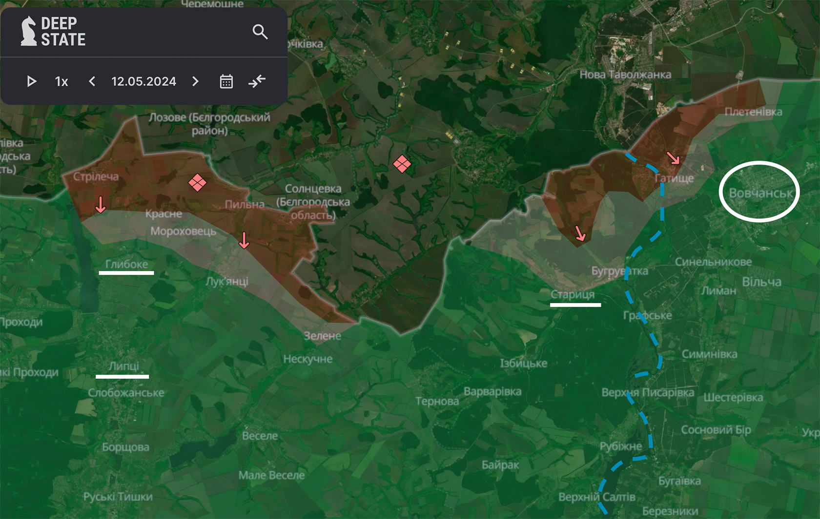 В перший тиждень травневого наступу росіян глибина їхнього просування доходила до 10 кілометрів. Нині, після контратак Сил оборони, вдалося посунути ворога на відстань 5–7 км від кордону.