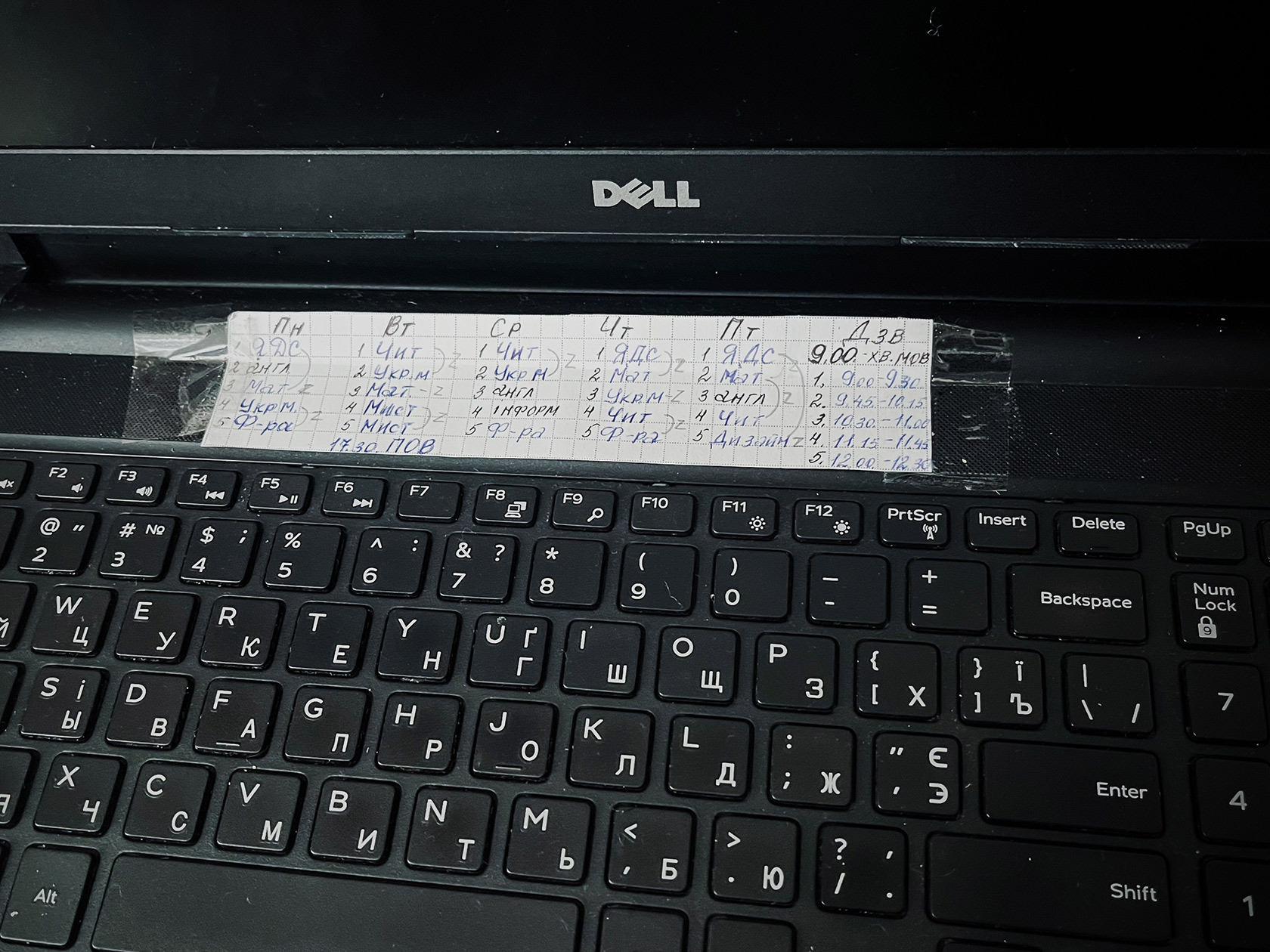 Потяг прямує зі Львова до Києва. Моя сусідка, 45-річна Світлана Акішина, на лептопі створює завдання для першачків – хмаринки, зайчики, букви, а між екраном і клавіатурою у неї наклеєний розклад уроків, писаний від руки.