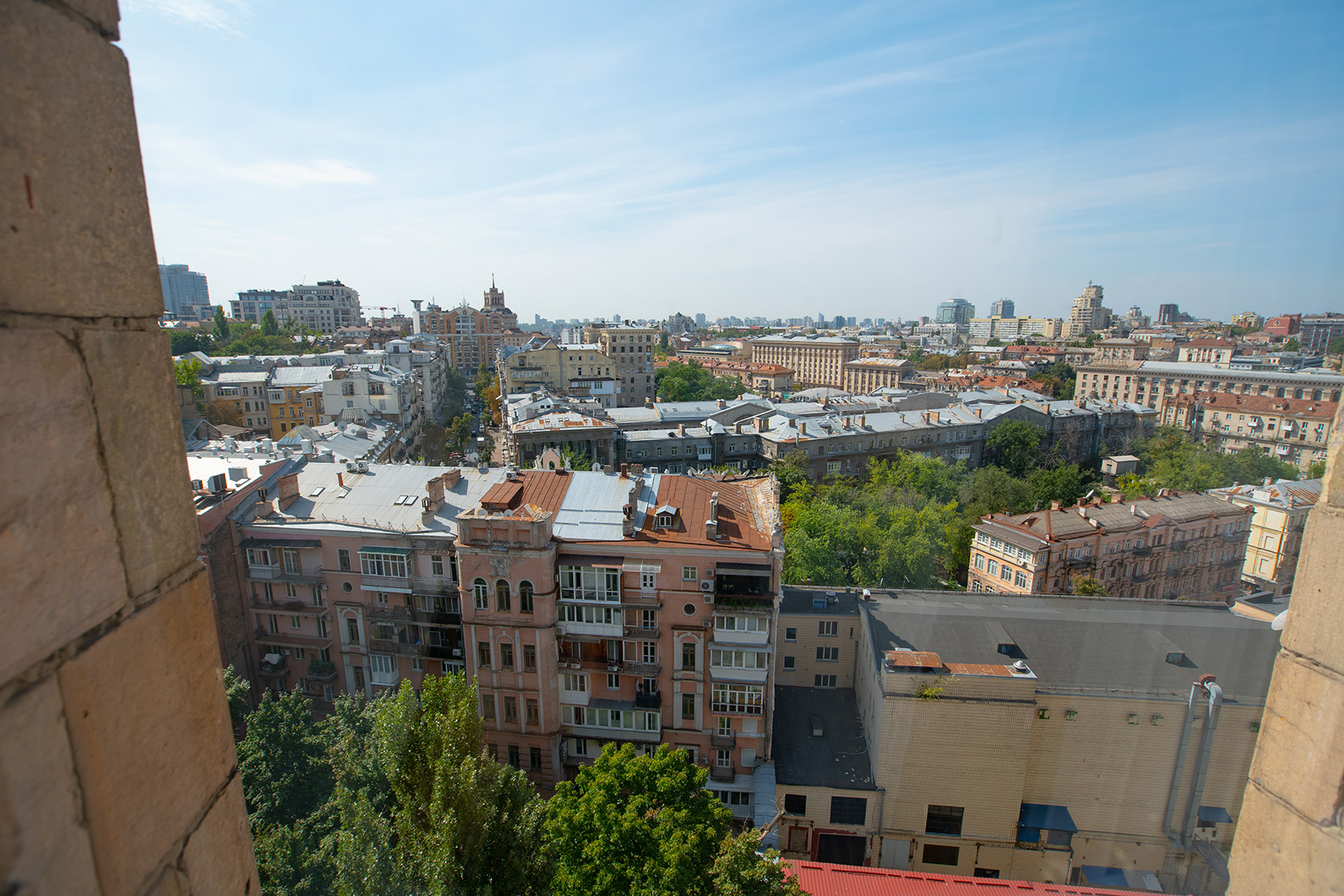 На запитання "Чи є у вас оглядовий майданчик?" заступниця директора "України" Оксана Ткач відповідає: "У нас тут кожний номер як оглядовий".