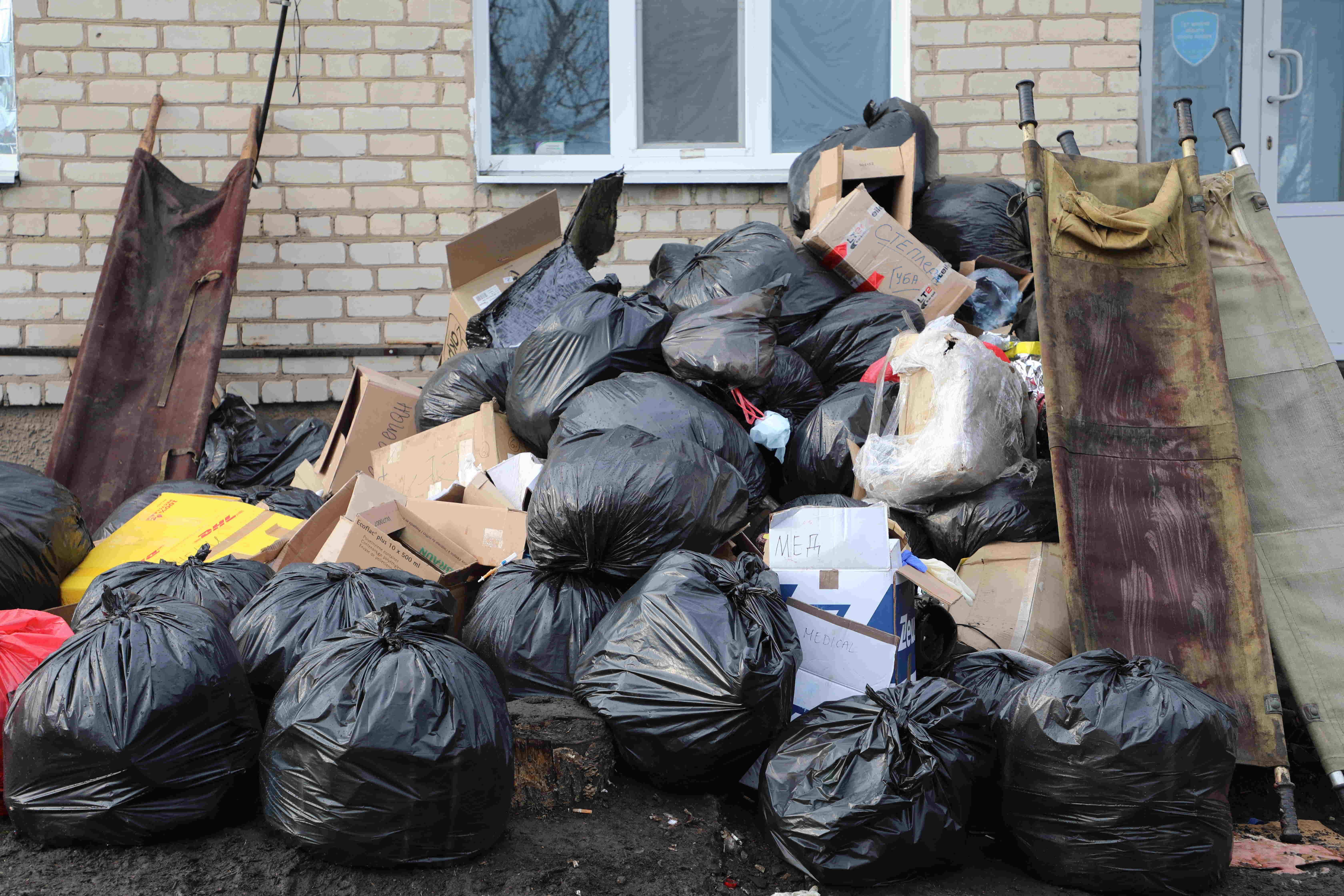 Рештки зіпсованого одягу та порізаного взуття спакують у великі чорні мішки. Надворі біля входу до стабпункту таких мішків – уже гігантський терикон.