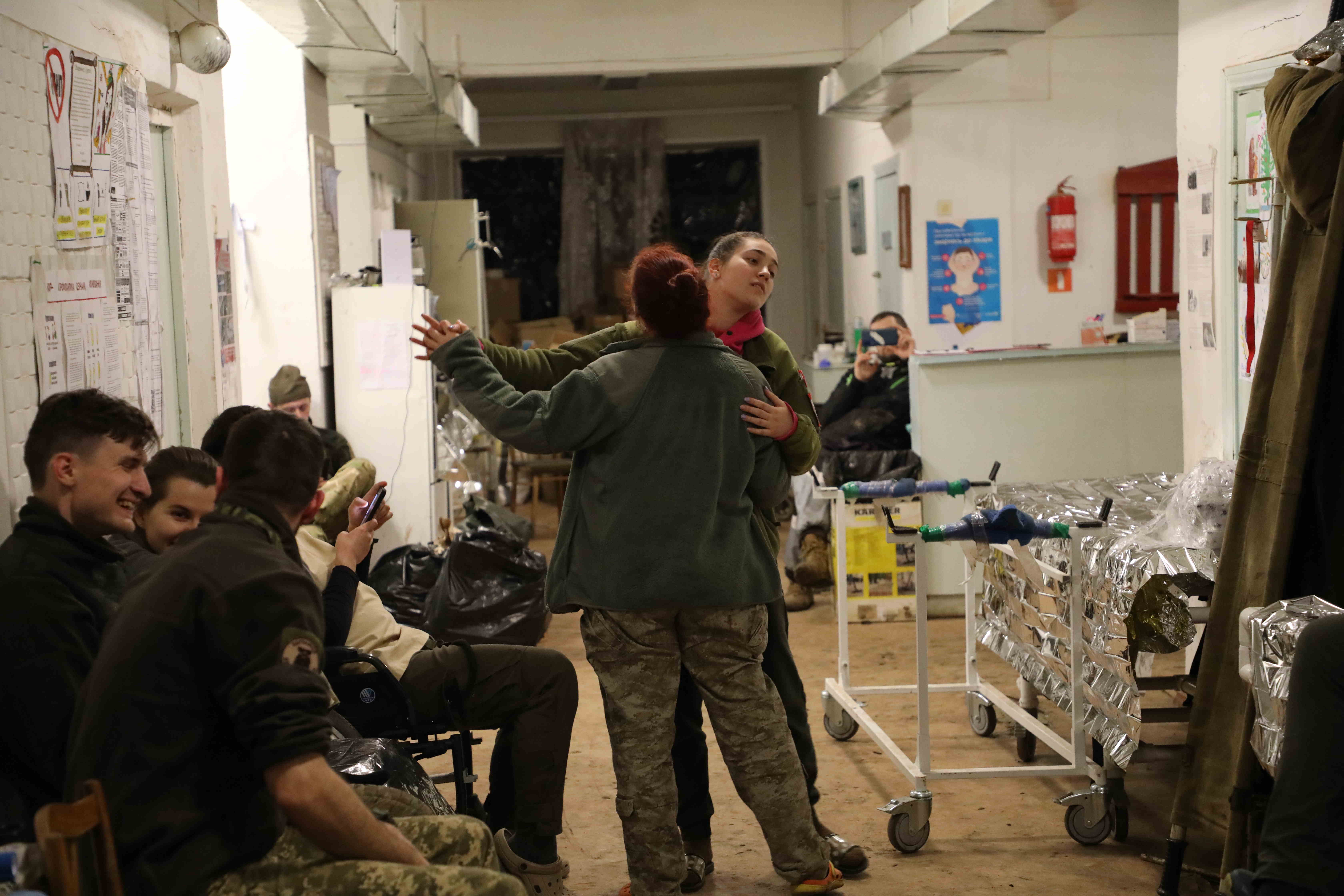 Коридор раптово оживає: його заповнює цілий натовп бійців. Одні з легкими пораненнями, інші – з контузіями. Лікарі розходяться між ними, з'ясовують, що і в кого болить. Комусь бинтують руку, комусь – ногу.