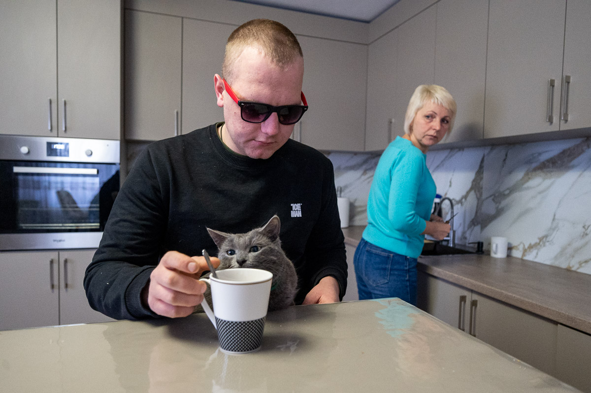 "Одного дня мама захворіла, ‒ згадує Олег. ‒ Хтось мав робити всю хатню роботу, годувати тварин. Я добре знав свій будинок, бо прожив у ньому все життя, намалював в уяві план, куди я маю йти і що робити, і пішов. Якось впорався. І тоді подумав: мабуть, треба визнати, що сліпота моя невідомо на скільки, і жити, як я живу зараз, не найкращий спосіб. Перше, що почав робити, я зробив не для себе, а для мами".