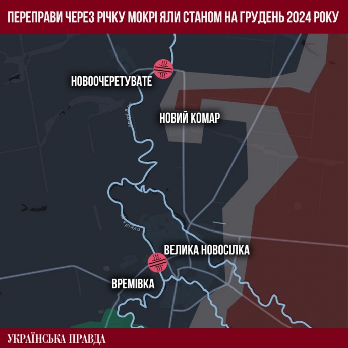 – Після того, як ми майже втратили Времівку – це приблизно початок січня 2025-го. Через Времівку проходив основний логістичний шлях до Великої Новосілки. Там була бетонна дорога, а також переправа, по якій можна було максимально близько під'їжджати технікою (до Великої Новосілки – УП), проводити евакуацію, а далі йти в пішому порядку.