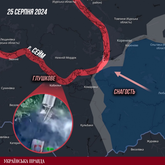 Паралельно Україна знищує один із логістичних шляхів російського угруповання на Курщині, а саме мости та переправи через Сейм у районі Глушкова.