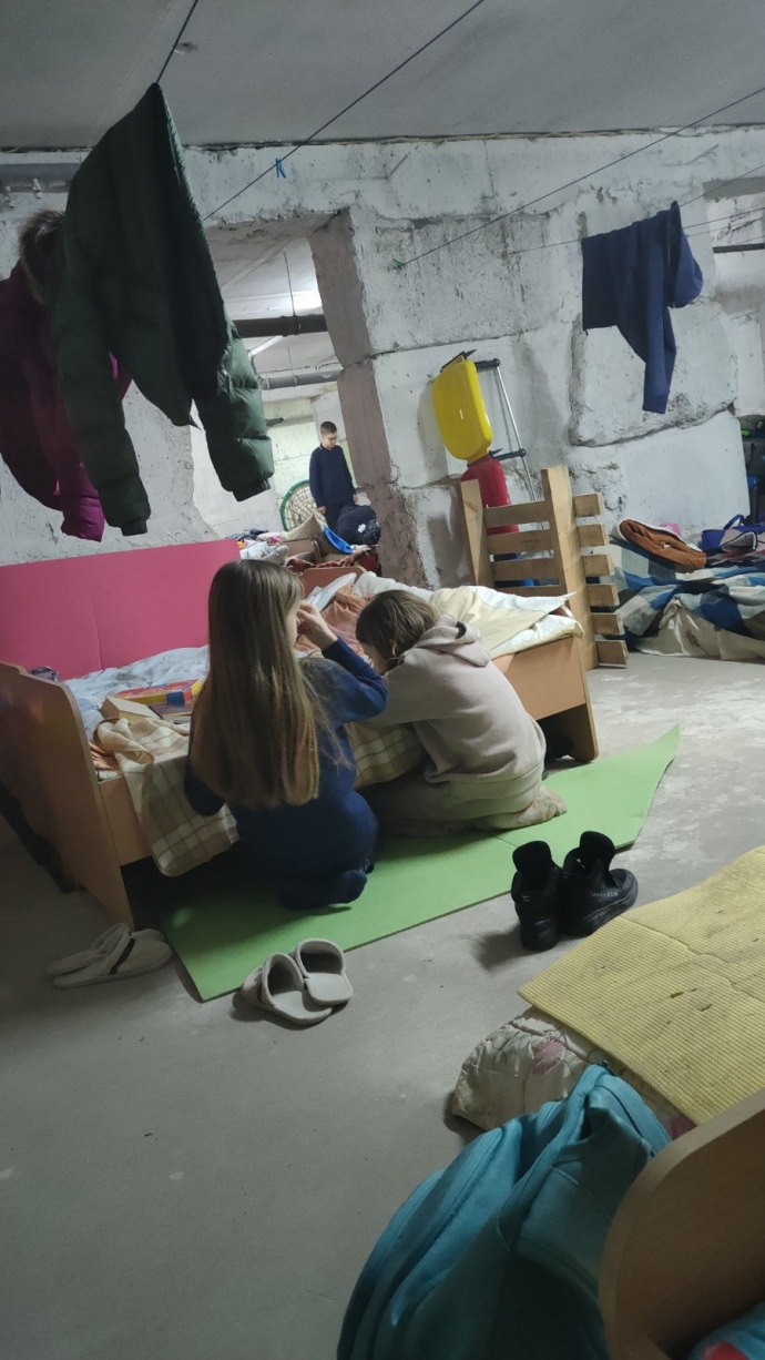 Ліжка для дітей зробили з дерев'яних щитків, які висіли на стінах і розповідали про хімічний та радіаційний захист. За постіль і матраци малечі слугували куртки дорослих. Найменша дитина майже весь час плакала, хоча батьки і намагалися її заспокоїти. Втім, жоден із присутніх не скаржився на це. Дорослі майже весь час сиділи на стільцях попід стінами.