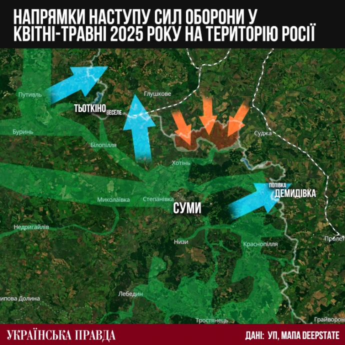 Наскільки відомо "Українській правді", наступальні дії як на Бєлгородщині, так і на Курщині, не принесли бажаного результату. На напрямку Тьоткіного, де Сили оборони мали частковий успіх, штурми теж припинилися.