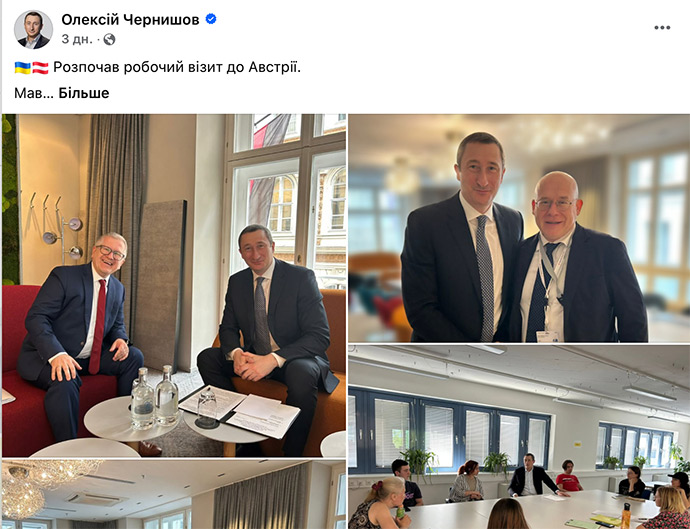 У понеділок Відень із офіційним візитом відвідав президент України. На жодному з фотозвітів із публічних заходів поруч із Зеленським не видно Чернишова – попри те, що віцепрем'єр також перебував у столиці Австрії з "робочим візитом". За інформацією джерел УП, Чернишов мешкав у тому ж готелі, що й офіційна українська делегація.