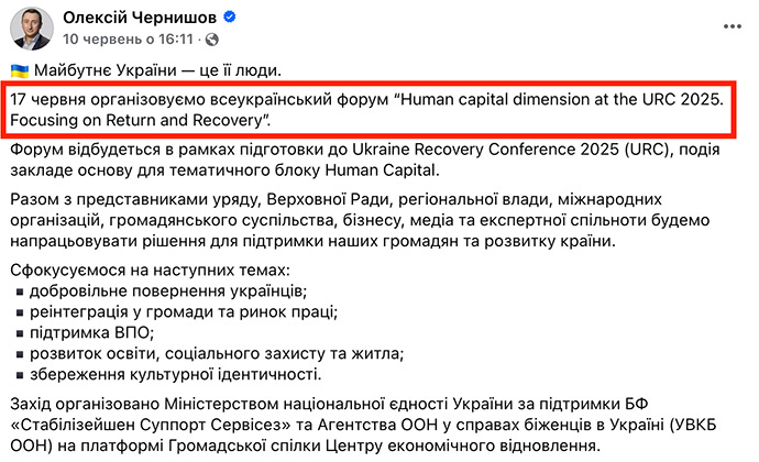 Вранці 17 червня стало зрозуміло: Чернишов не повернувся до України навіть на власний форум – замість очної участі він долучився до події онлайн із Відня.