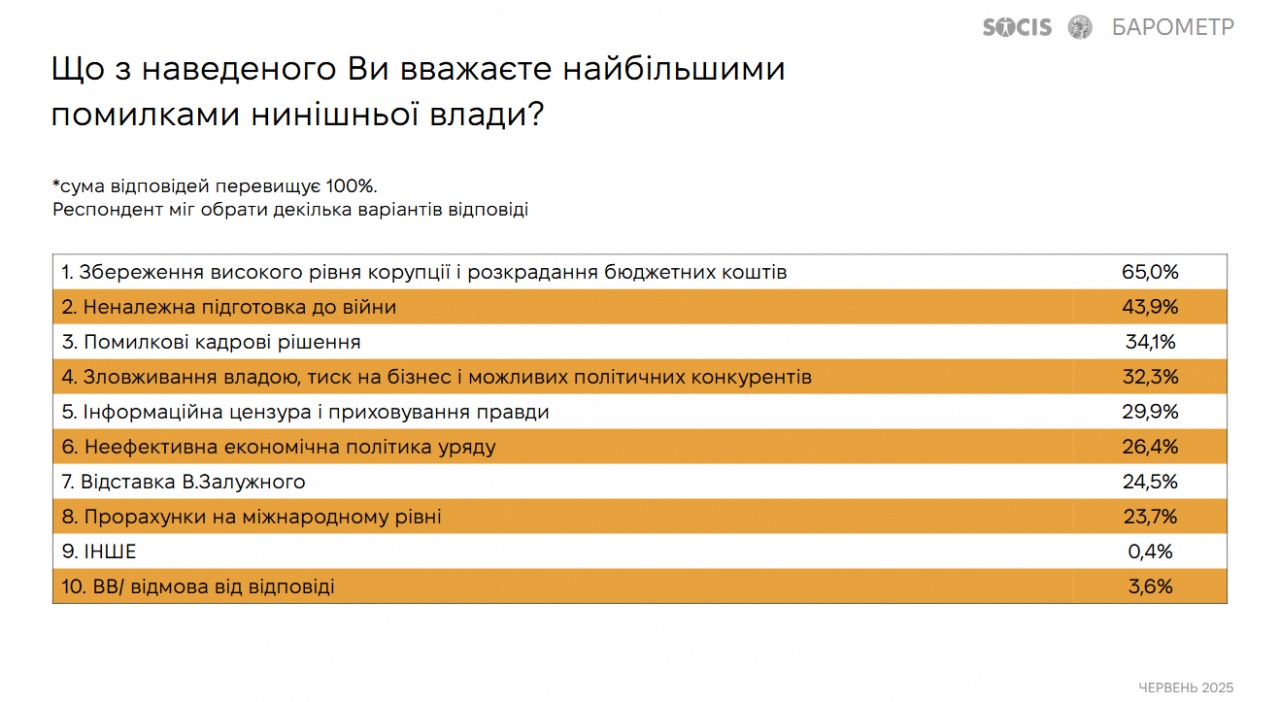 Головною претензією до Зеленського і його команди з великим відривом є "збереження високого рівня корупції".