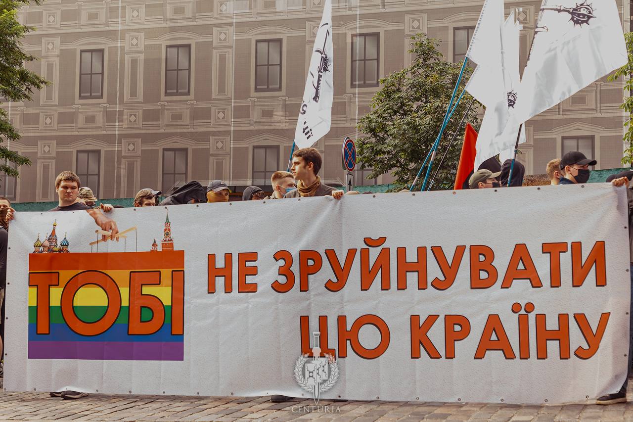 Як допоможуть у створенні сильної України публічні виступи центурійців проти ЛГБТ-спільноти, незрозуміло. В організації кажуть так: "Центурія стоїть на засадах Української Державності. Ми дотримуємося статті Конституції 51, яка чітко каже: "Шлюб ґрунтується на вільній згоді жінки і чоловіка. Сім'я, дитинство, материнство і батьківство охороняються державою". Місця ЛГБТ-збоченням тут немає".