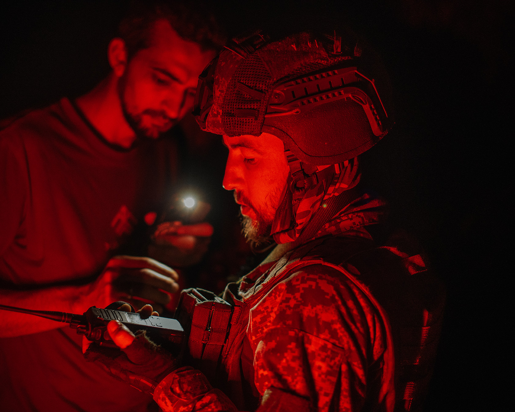 21:00, п'ять годин до виходу на позиції. Поблизу КСП (командно-спостережний пункт), мозкового центру операцій, зустрічаємося з Шатаєм – одним із тих, хто сьогодні вестиме групу на позиції.