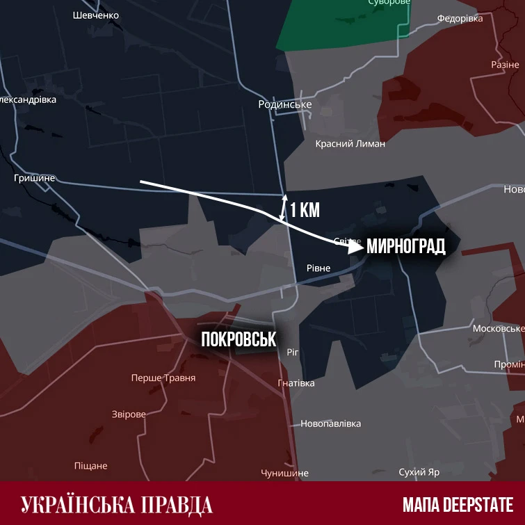 Найбільший ризик Мирнограда – втратити останні дороги до міста, що означатиме "закриття" вже сформованого напівоточення. Нагадаємо: дороги через Покровськ більше немає, шляхи до Мирнограда обмежені, і росіяни це чудово розуміють.