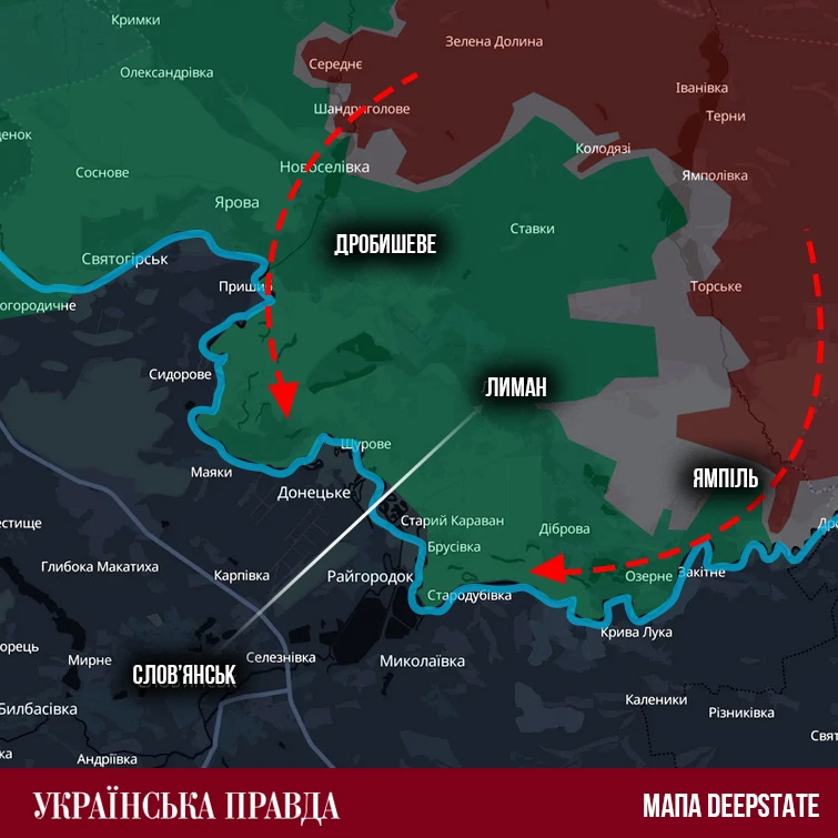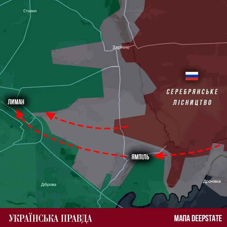 Після витіснення українських підрозділів з лісництва окупанти сміливо пішли на Ямпіль, біля якого вже утворилася широчезна "сіра зона", а звідти – на околиці колись деокупованого Лимана. Сам Лиман, за даними УП, росіяни планують обходити – як і всі великі міста в останні роки. Зі сходу – по згаданому Ямполю, із заходу – по Дробишевому, де вже також фіксували противника.