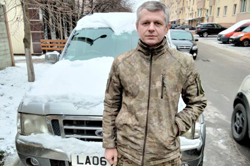 Військовий з 95 ДШБ приймає машину