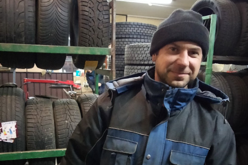 Співробітник київського шиномонтажу, власник якого не бере гроші за послуги для машин ЗСУ