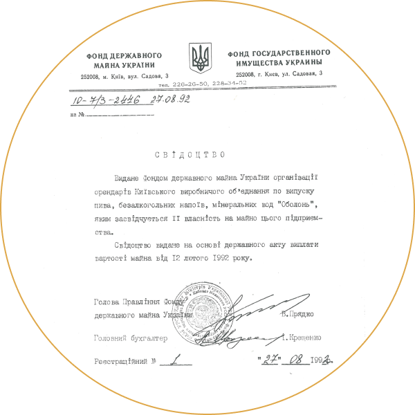 90-ті роки були для України непростими – здобуття незалежності несло за собою складні виклики, але водночас відкривало нові можливості. "Оболонь" стала першим підприємством, яке отримало приватизаційне свідоцтво Фонду держмайна України – це дало потужний поштовх до подальшого розвитку компанії.