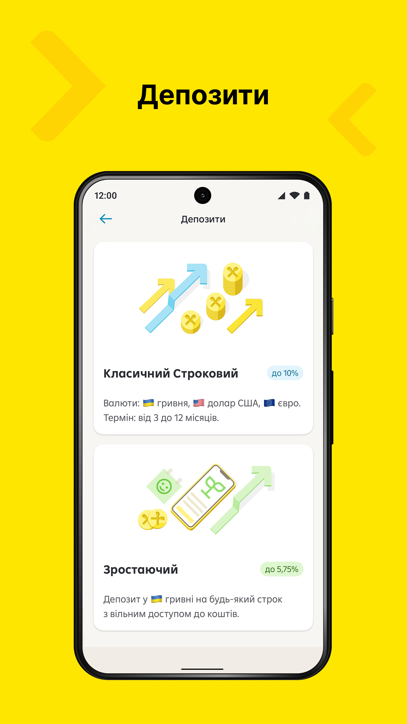"Наприклад, депозит «Зростаючий». На нього ви витратите лише кілька секунд в застосунку MyRaif – все дистанційно і 24/7. І матимете доступ до своїх коштів в будь-який момент, зможете ними скористатися при потребі. А при цьому банк буде нараховувати вам до 5,75% річних на залишок. І не важливо скільки ви поклали на цей депозит, коли та скільки зняли (хоч 1000 разів на день), банк вам нарахує відсотки за кошти, що зберігаються на цьому рахунку", – наголосив експерт.